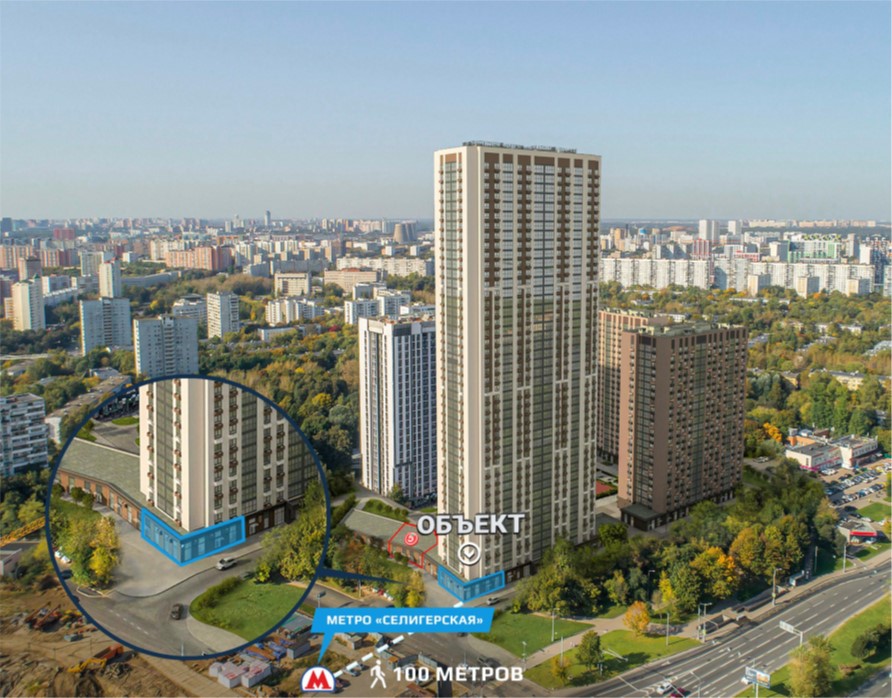 Удобное расположение бизнес-центра: 2 минуты от станции метро "Селигерская", 7 минут от МЦК "Окружная" на машине, МКАД - 10 минут на машине, ТТК - 15 минут на машине.