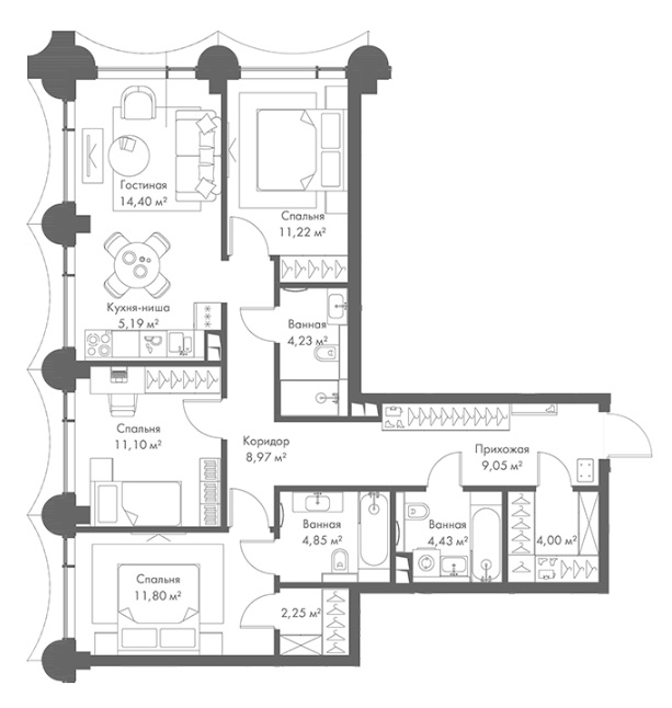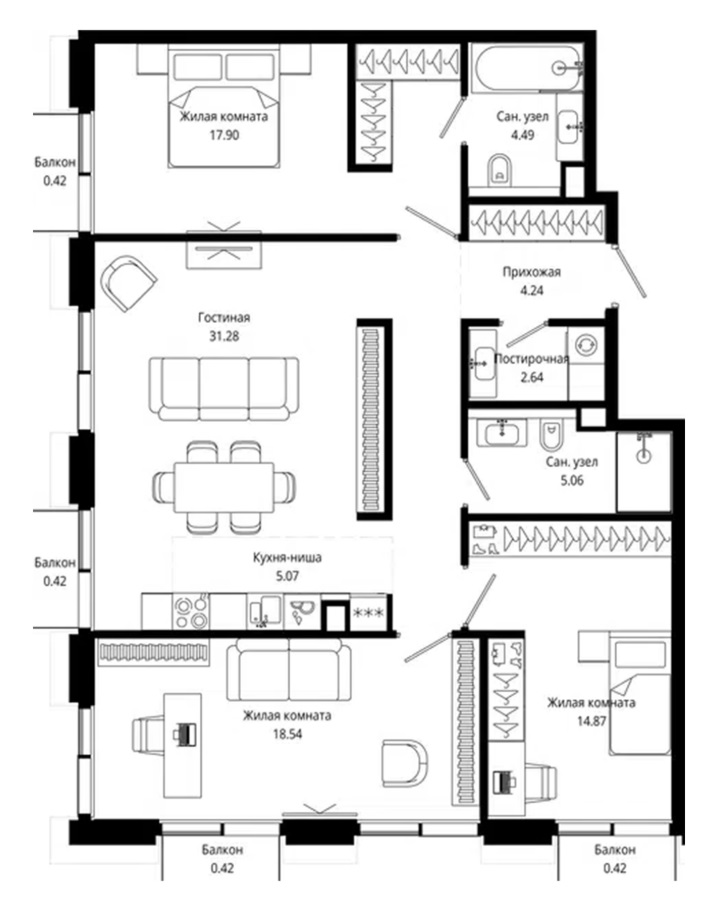 Площадь 109 м²